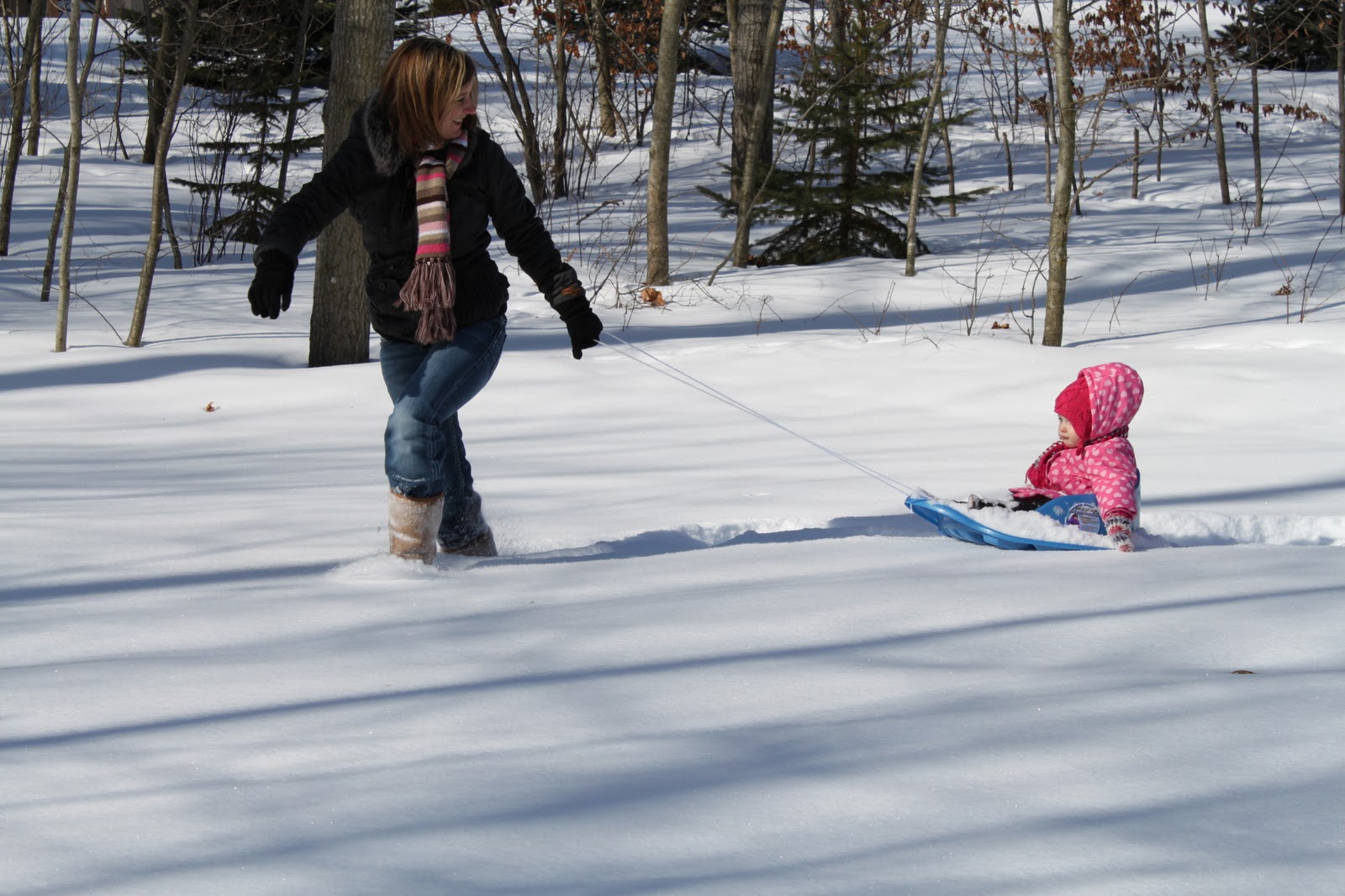 The snow was quite deep and soft, it was a workout for the person pulling the sled, I can tell you that.